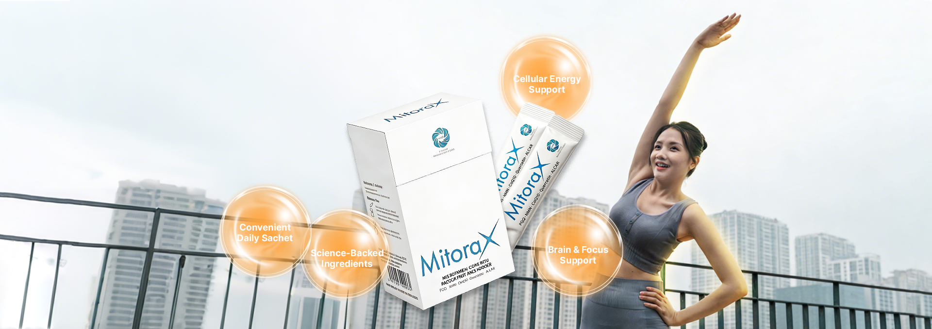 Mitorax combines top global anti-aging ingredients such as NMN, PQQ, CoQ10, Quercetin, and ALCAR to boost cellular energy metabolism and optimize mitochondrial function. Regular use may slow aging, reduce fatigue, enhance endurance and cognitive health, and restore vitality.